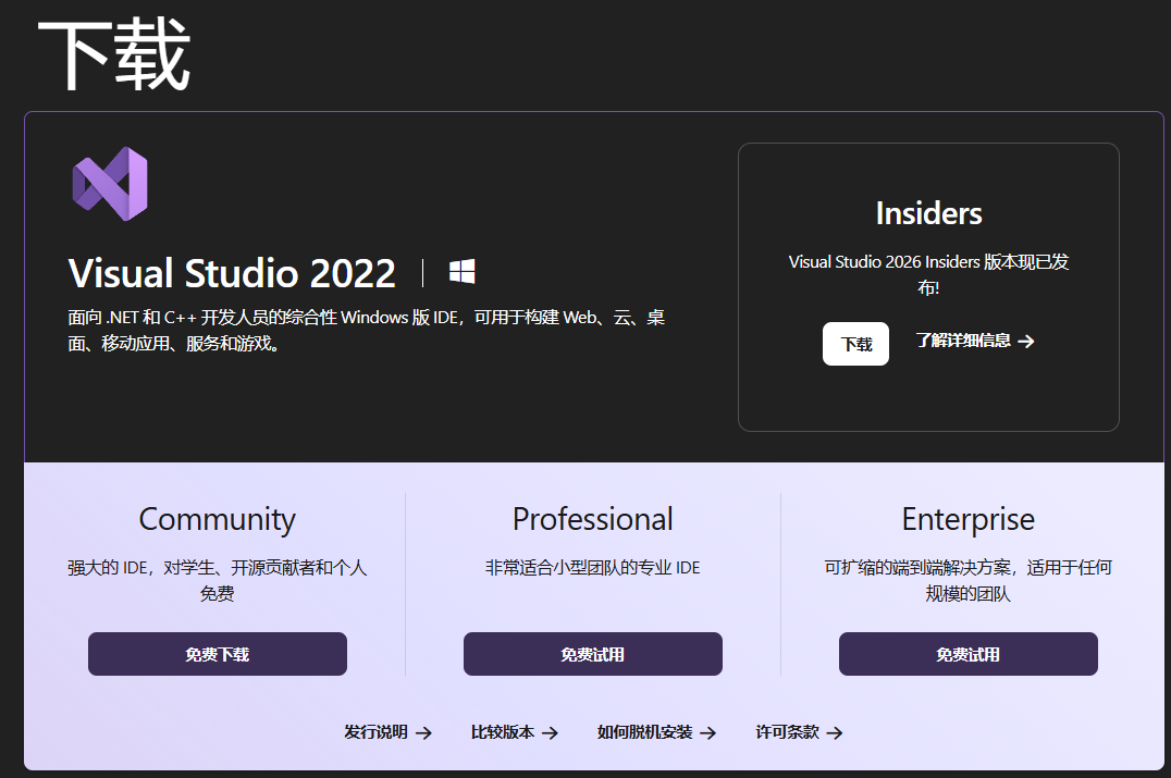 VS2022下载地址:https://visualstudio.microsoft.com/zh-hans/downloads/?cid=learn-onpage-download-install-visual-studio-page-cta