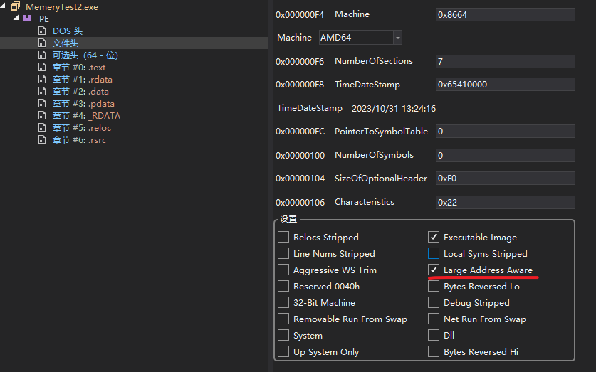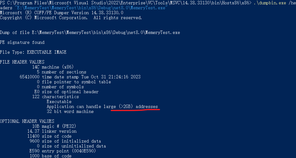 .\dumpbin.exe /headers "E:\MemoryTest.exe"