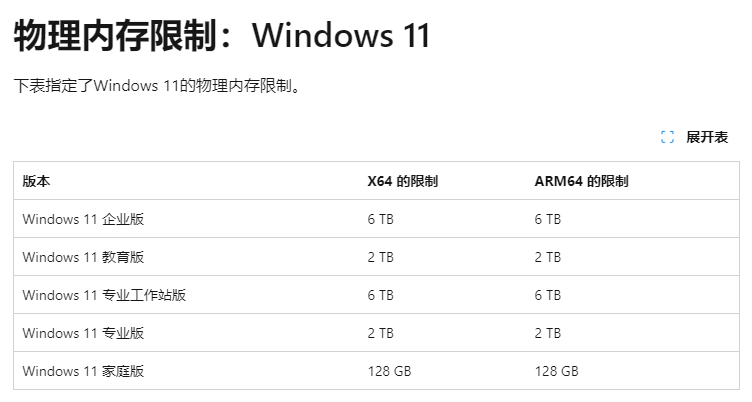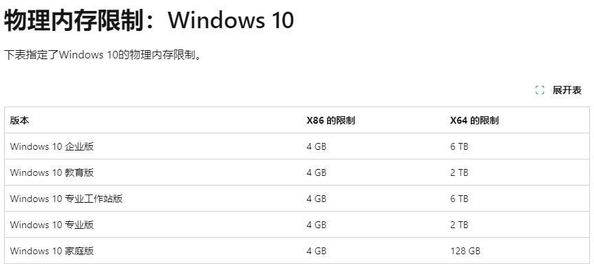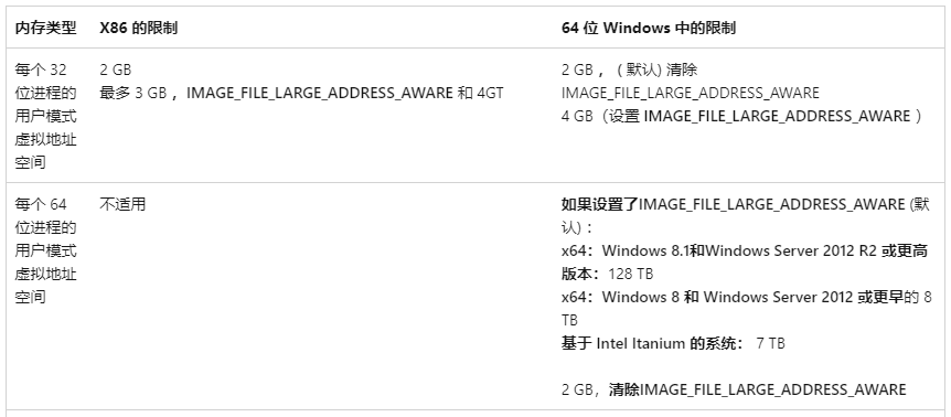 https://learn.microsoft.com/zh-cn/windows/win32/memory/memory-limits-for-windows-releases?redirectedfrom=MSDN