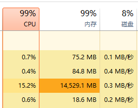 实际上,它一共占用了14GB 内存(大概,实际上波动还挺大)