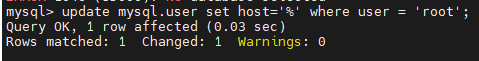 update mysql.user set host='%' where user = 'root';