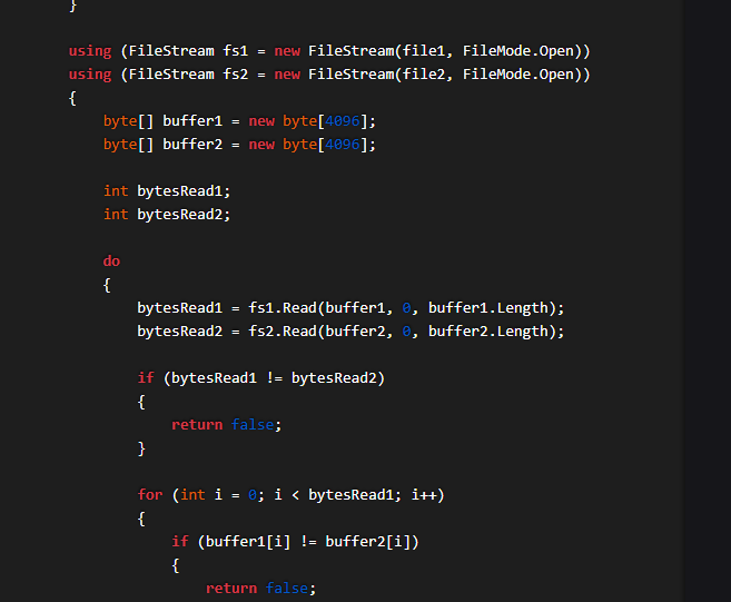 《.NET 下最快比较两个文件内容是否相同》参考地址