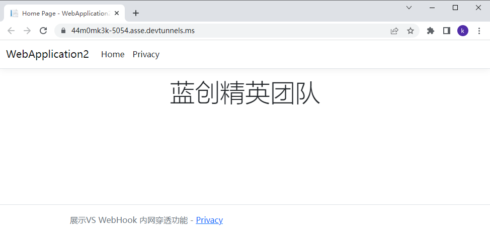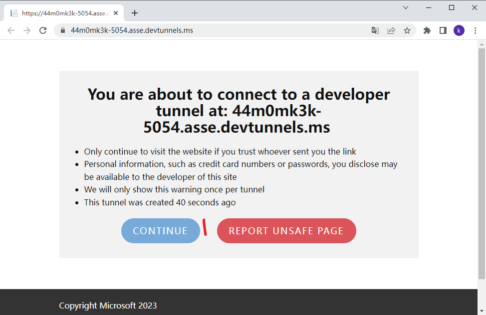 然后,可以复制 https://44m0mk3k-5054.asse.devtunnels.ms/ 地址给需要分享的人,对方点击 1,继续按钮,就看到网站的内容了。