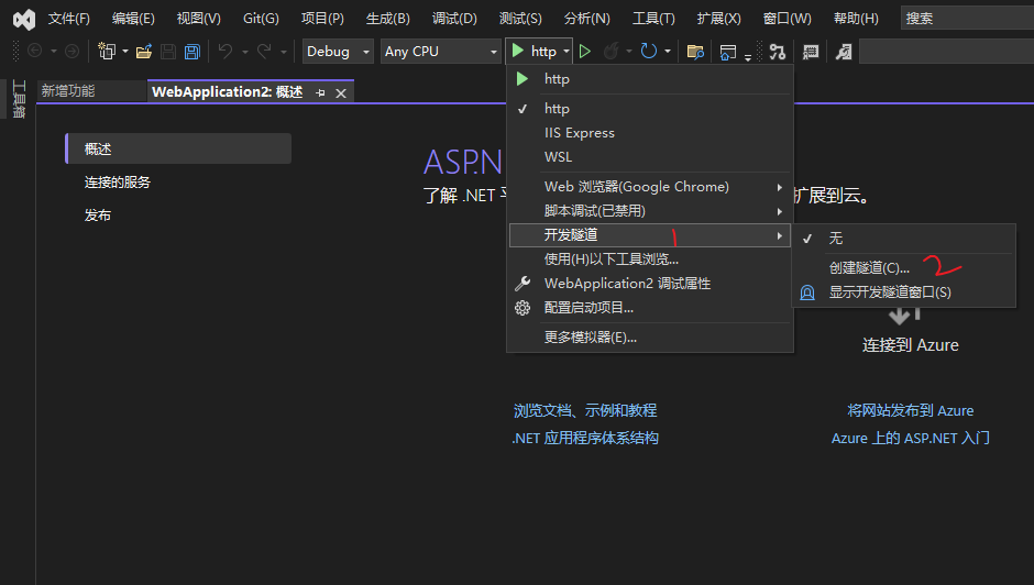 昨天刚发现了一个功能就是VS自己提供的内网穿透的功能(花生壳等),这个功能很不错,可以很方便的把当前的服务让对方访问你当前的服务。