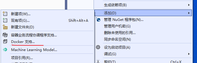 新建项目后,可以通过,项目右键,添加,docker 支持