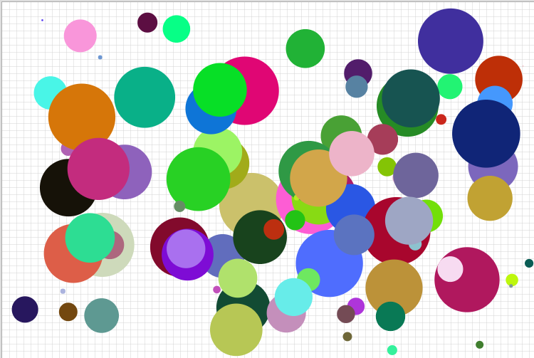 另外一个就是随机一个圆形,我这边随机了一百个,初始位置大致都一样,但是,每个方向角度随机,颜色随机,移动速度随机。
