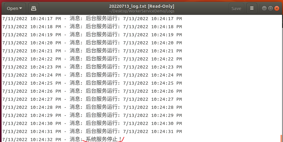 Log.Info($"后台服务运行: {DateTime.Now}");