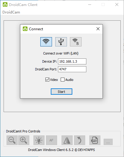 网上搜了很多资料,最后找到了这个好用的视频工具 DroidCam ,它分为两个端,一个是手机端,一个是PC端,这样QQ就可以用PC端的驱动来实现PC的摄像头效果。