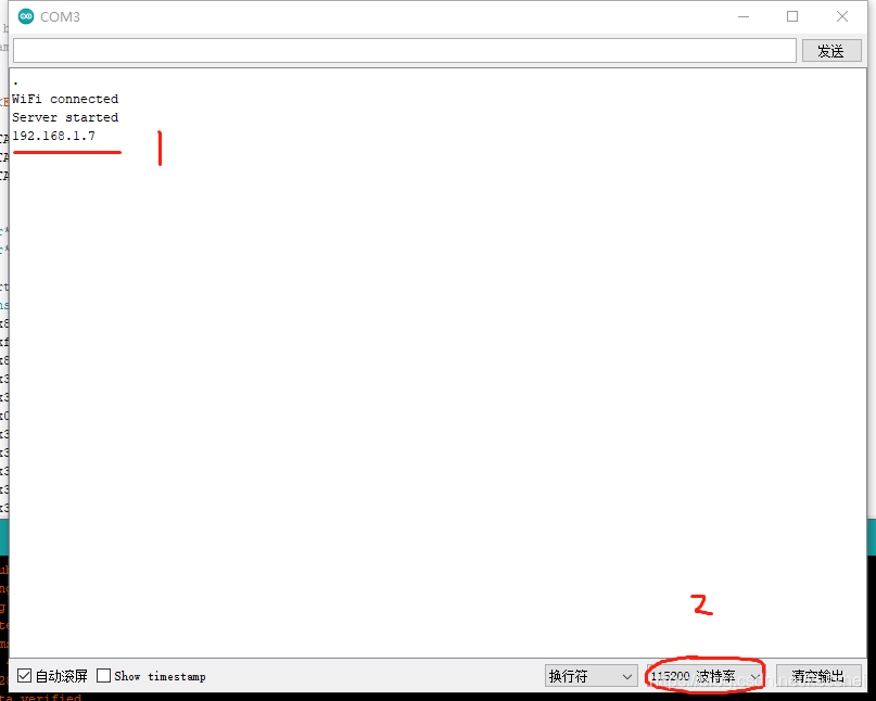 2.为波特率,一定要选对要不然会乱码(默认的话 应该是115200)