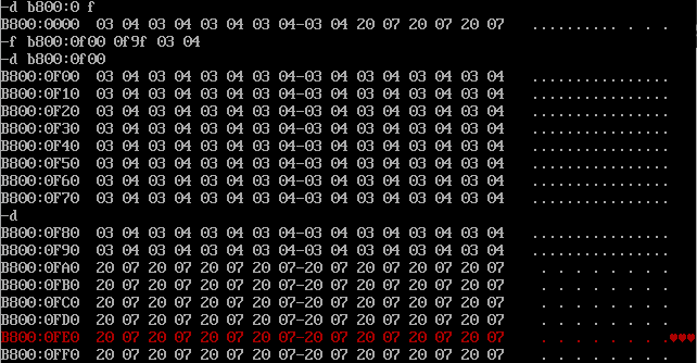 -f b800:0f00 0f9f 03 04