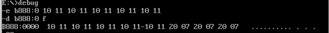 (2)给出在debug中使用f命令批量填充内存单元的命令,及,效果截图
