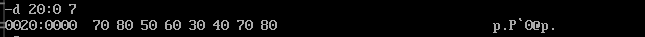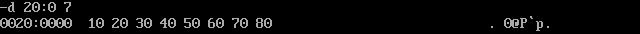 问题4:如果把最后四条指令改成截图中的顺序, pop [6] 指令执行结束后,使用d命令 d 20:0 7查看此时数据空间内的数据是否有变化。给出实验截图。