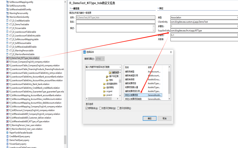 2、切换到BOS透视图,打到对应的.relation文件,修改supplierEntity,原来是指定物料的实体,改成自定义核算项目的实体