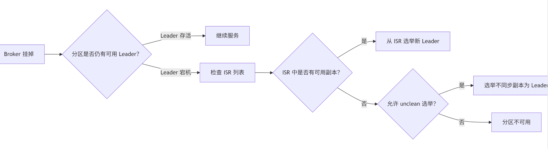 副本不足导致的 Leader 选举失败本质是: 数据持久化与可用性的权衡结果。通过合理配置 min.insync.replicas 和副本分配策略,结合机架感知部署,可大幅降低此类故障概率。
