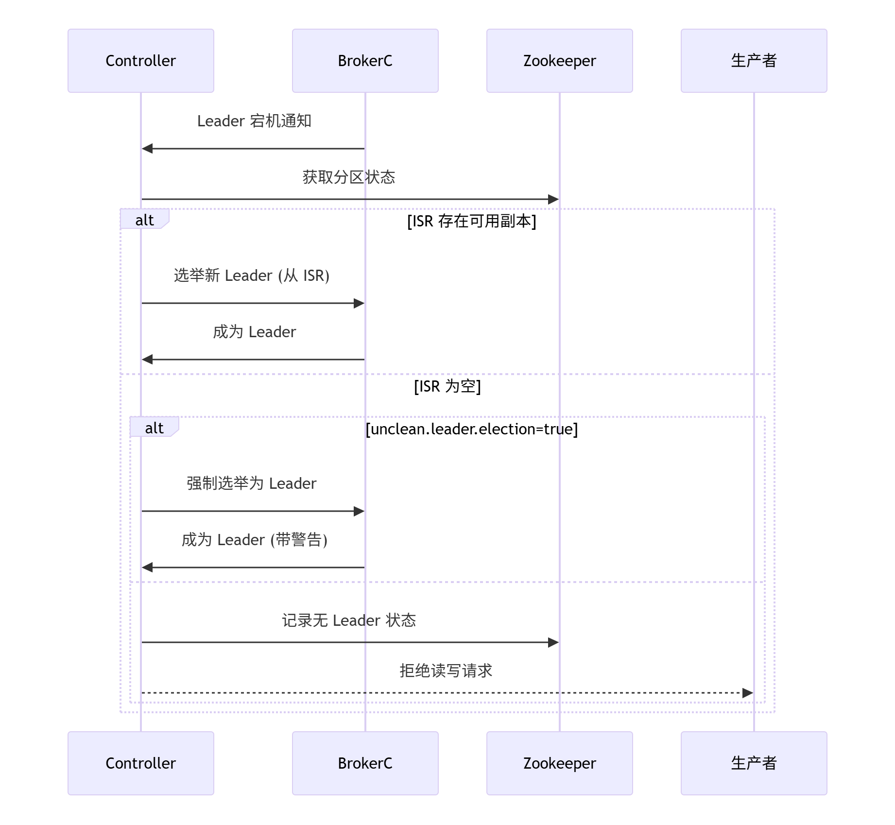强制解除阻塞(若ISR为空且禁止unclean选举):