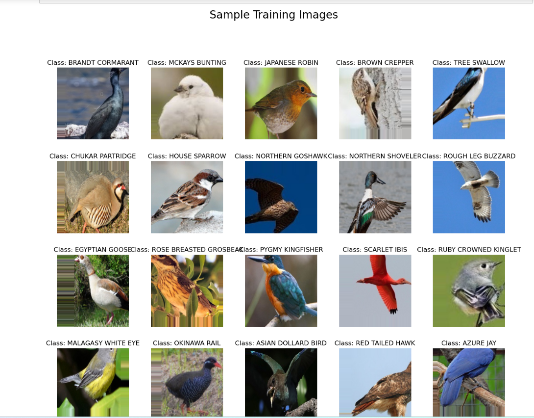 1 #设置训练集所在的路径 2 train_ds="./lty/bird-species/train" 3 #设置测试集所在的路径 4 test_ds="./lty/bird-species/test" 5 #设置验证集所在路径 6 validation_ds="./lty/bird-species/valid"