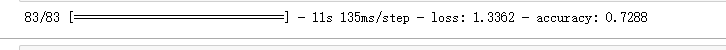 1 #evaluate函数对测试集进行评估,并将评估结果保存在results变量中 2 results =model.evaluate(test_generator)