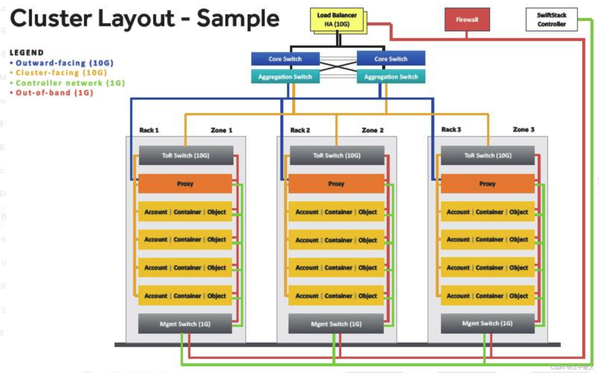 以一个对外提供对象存储服务的集群为例,其网络架构可以为: