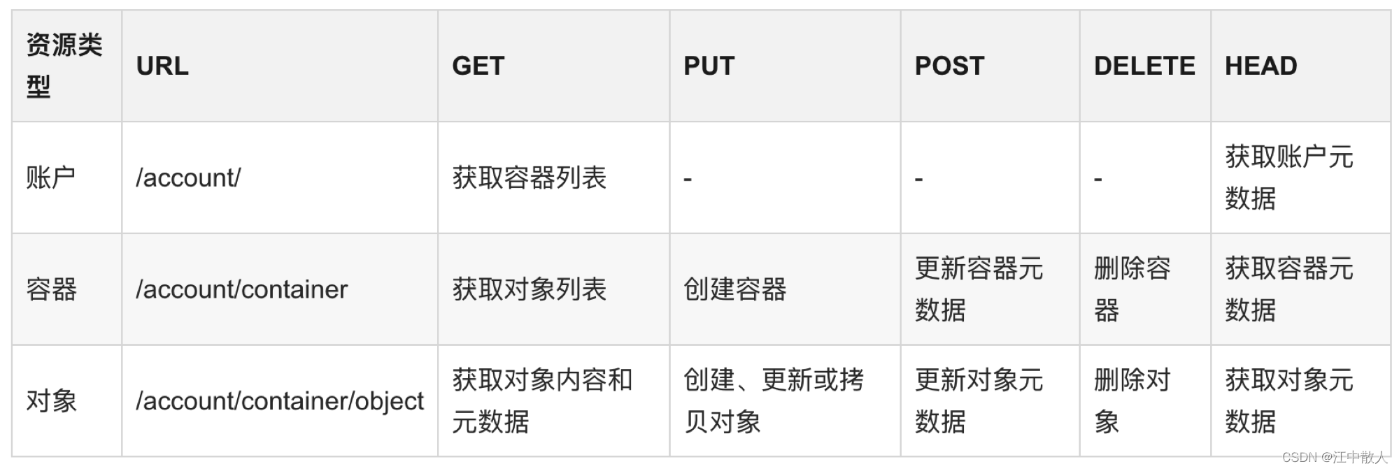 - 客户端使用 HTTP 或者 HTTPS 访问 Swift,包括读、写、删除 objects。也支持 COPY 操作,它会创建一个新的 object,使用一个新的 object name,包含老 object 的 data。没有 rename 操作,它会首先 copy 出一个新的,然后再将老的删除。