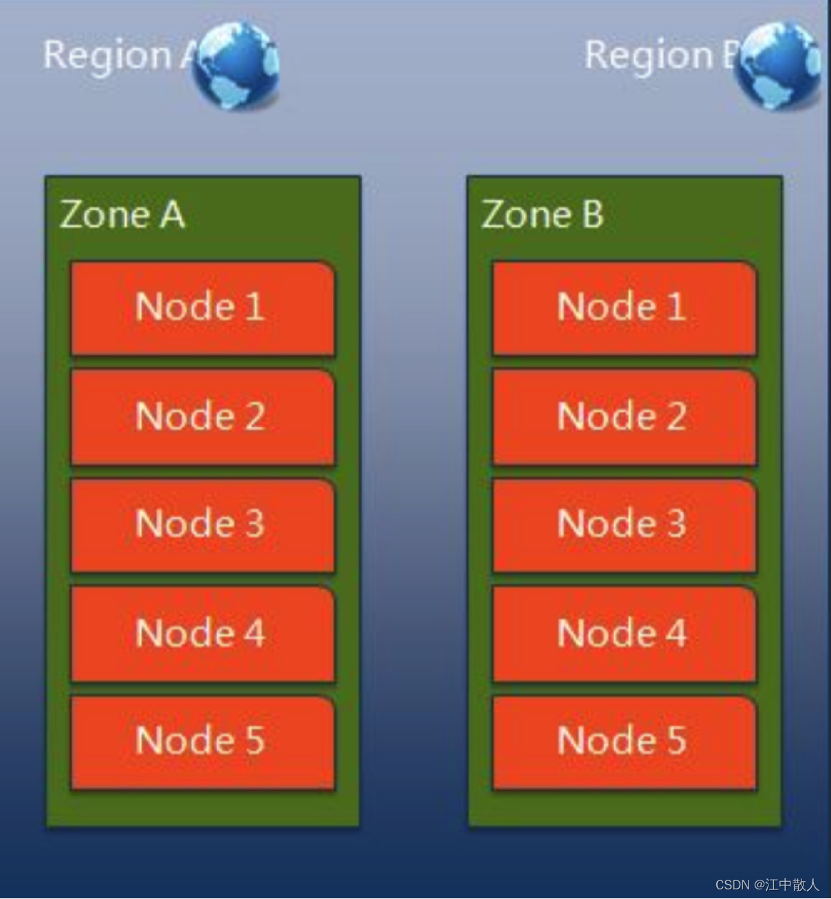 - Region:地理位置上的区域,比如不同城市甚至不同国家的机房,这主要是从灾备方面考虑的。
