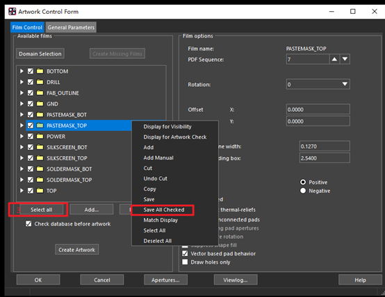 2、 制作拼版之前要先设置好要拼版的PCB的artwork,并将artwork的层叠导出