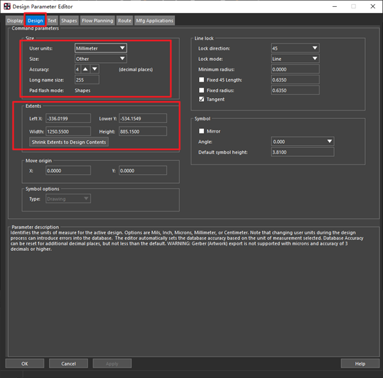 3、 新建一个新的PCB文件,并设置基板的大小,setup->design parameters,并设置好单位和尺寸