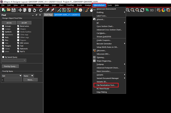 5、 开始导入PCB,Manufacture-> fab panelization tool