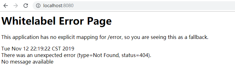 项目启动完成,浏览器中输入localhost:8080,返回如下页面,说明项目启动成功。