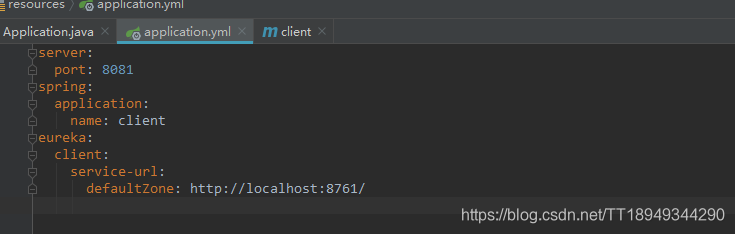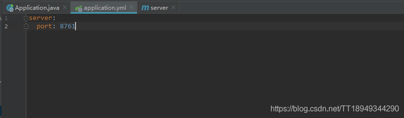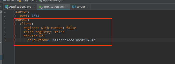 打开application.yml 配置文件,首先,将端口改成8761,可能是习惯性问题吧!大家都喜欢把server配置成8761端口,不要问为什么,可以随便定义,只要不冲突。