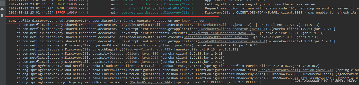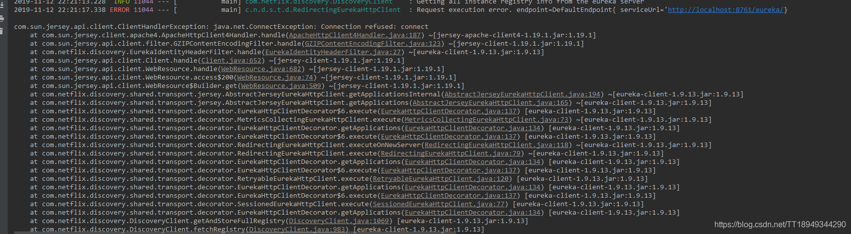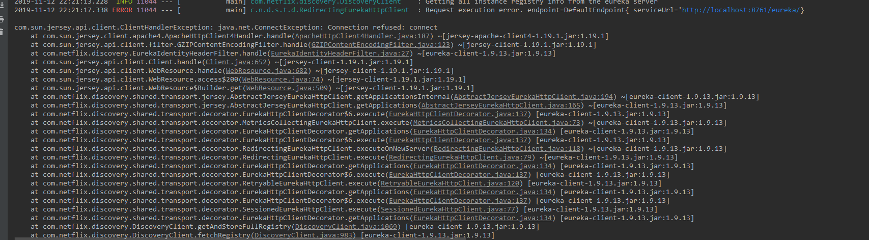 原来Eureka Server在默认情况下会把自己当做客户端进行注册,这就导致发生了如上错误。至于为什么Server会向Server自己注册,后面的文章会讲到。于是,做下面的修改