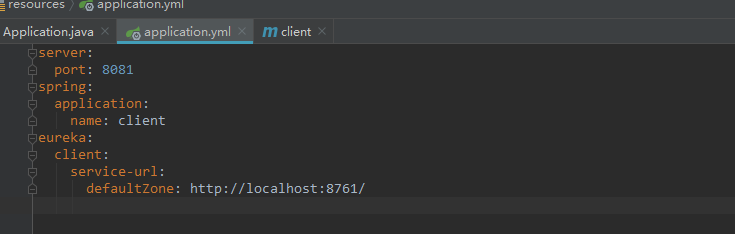 server-url: defaultZone: http://localhost:8761/ 表示服务中心的地址。修改完以上几项,再重启项目,
