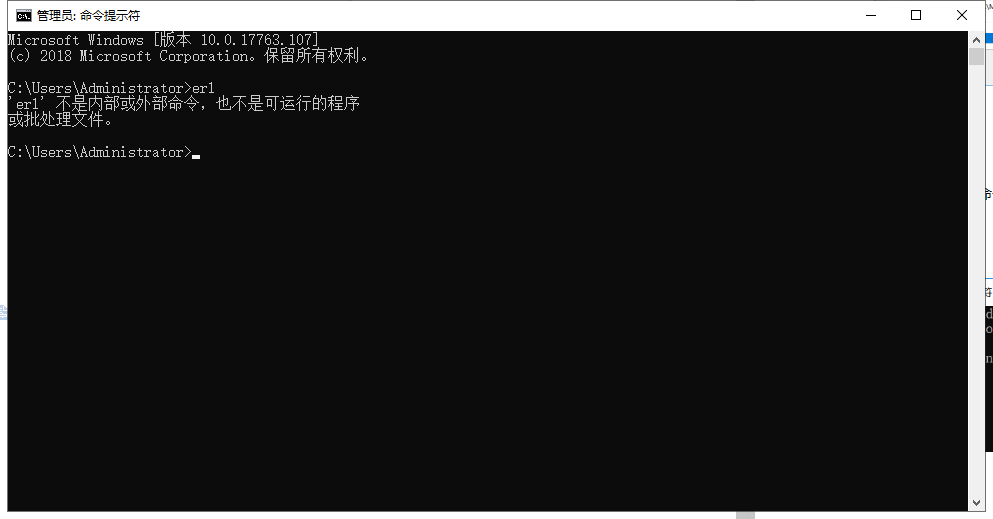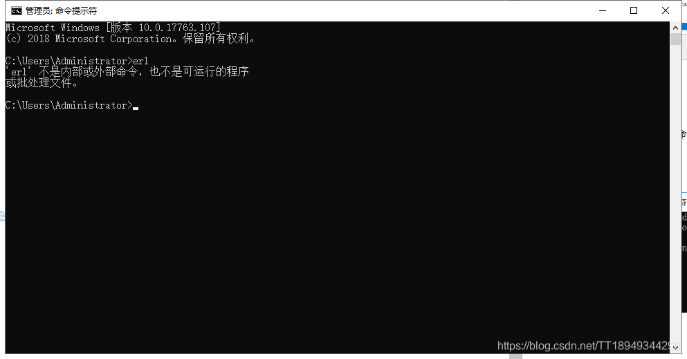 安装完成,验证是否成功,打开CMD命令窗口,输入 erl,提示错误信息,因此我们需要进行环境变量配置。