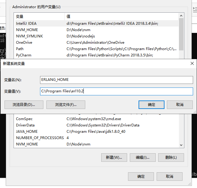 第一步,配置环境变量,新建变量名为ERLANG_HOME 的环境变量,然后将变量值指向安装目录即可。