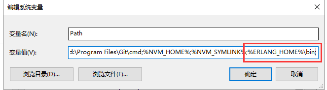 第二步,将可执行bin文件配置到Path变量中,用来在命令行窗口可以执行erl命令。