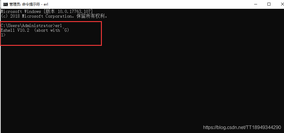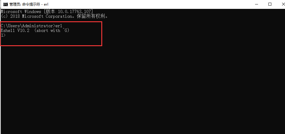 第三步,输入 erl验证,出现如下提示版本信息,则表示配置成功,否则请检查配置。