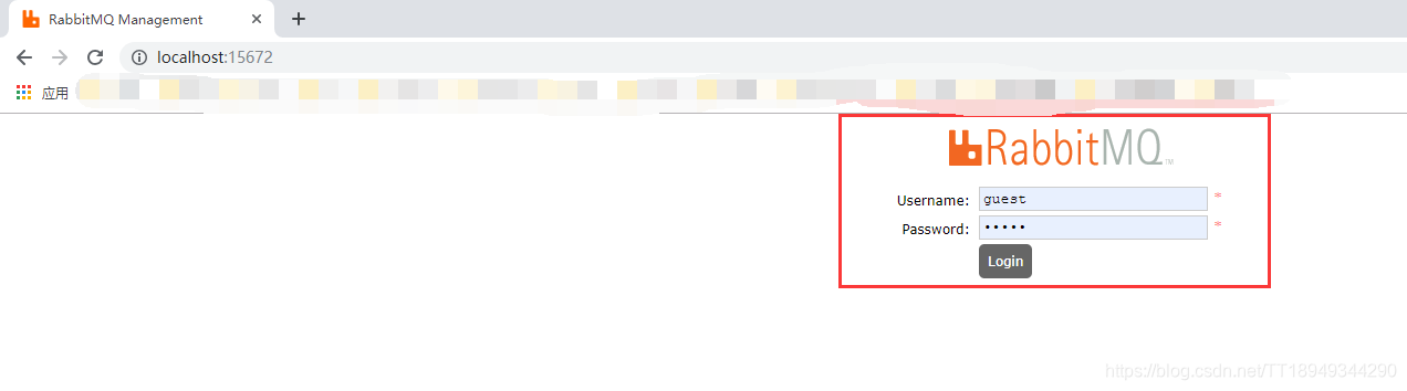 到此,RabbitMQ的安装全部完成。打开浏览器,输入管理端地址:localhost:15672,注意,这里的端口是15672.系统默认就是这个端口号(此处端口号不同于应用连接端口号,应用连接端口号为5672,后面的文章会讲解怎么通过Java Spring 连接到Rabbit MQ),打开网址会出现如下界面:
