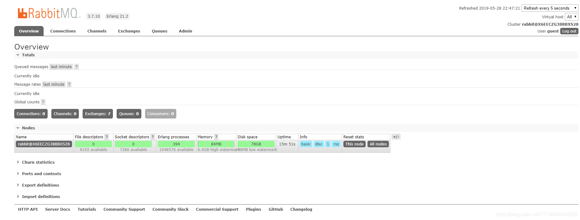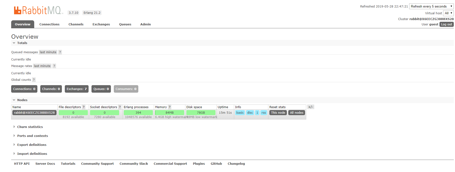 激活过后,需要重启服务器,命令如下:net stop RabbitMQ && net start RabbitMQ
