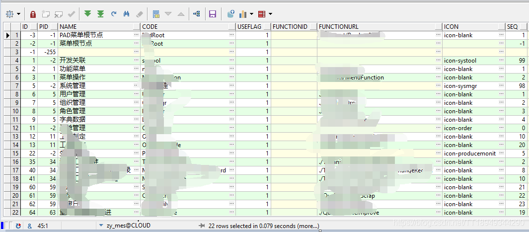 如上图可以看到,每一条记录都有一个pid,代表的是父节点的ID,这里我们的菜单根节点,也就是最大的父节点的ID为-1,其他的都是他的子孙们。
