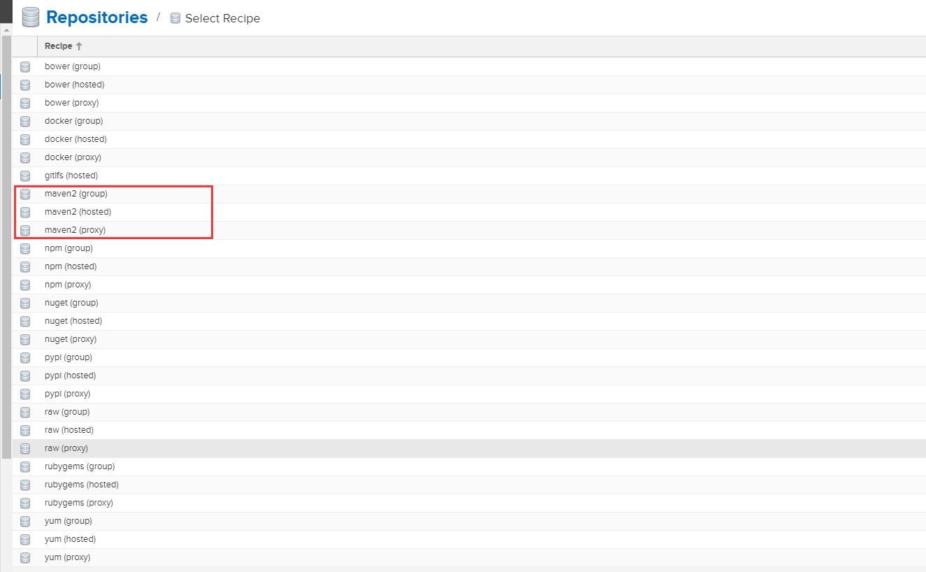 可以看到有三种,关于这三种的介绍,请移步谷歌或者百*。这里我们选择第二种,创建宿主机器上的maven库。这个一般就是用来管理私有的一些jar包,不提供给第三使用的。