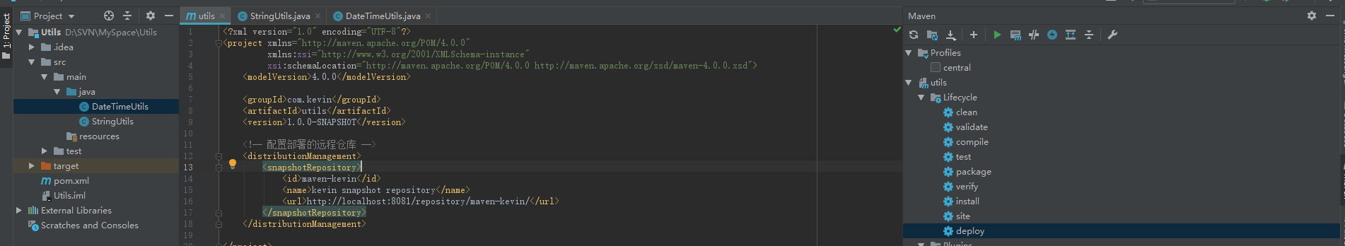 这个是我需要进行打包的jar包,配置目标仓库地址