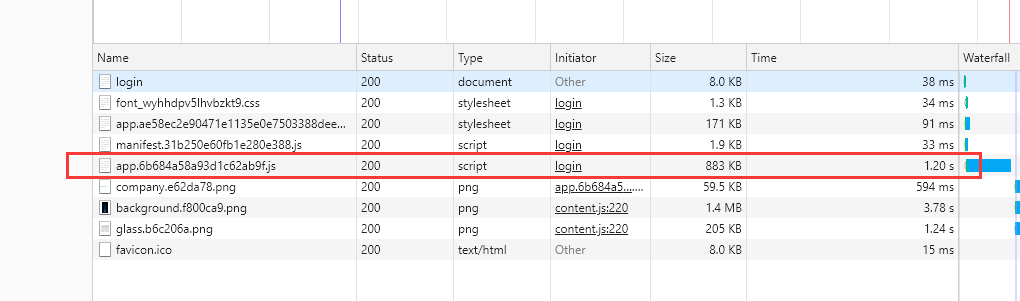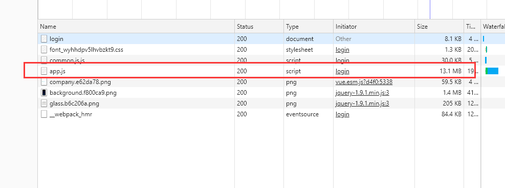 公司没有专职的前端开发,老板需要做一个vue的App,作为自命不凡的未来的软件架构师的我,接下了这个毫无头绪的摸不着东南西北的小项目。所有的东西开发完成,上线部署,发现第一次访问都会很慢,之后就变快了。F12 打开,查看请求,发现app.js这个文件竟然有13.1M(如下图),这么大的一个文件,要在第一次访问的时候加载进来,实在是考验用户的忠实程度,凡是没有120分耐心的人,都会在2秒内关闭,更何况有的人网速慢要等个10秒呢!