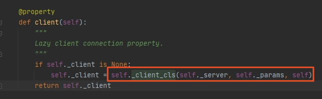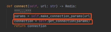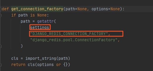在这里我们可以看到:client对象为setting中指定的,如果没有指定,默认使用 django_redis.pool.ConnectionFactory对象的connect方法和redis建立连接。