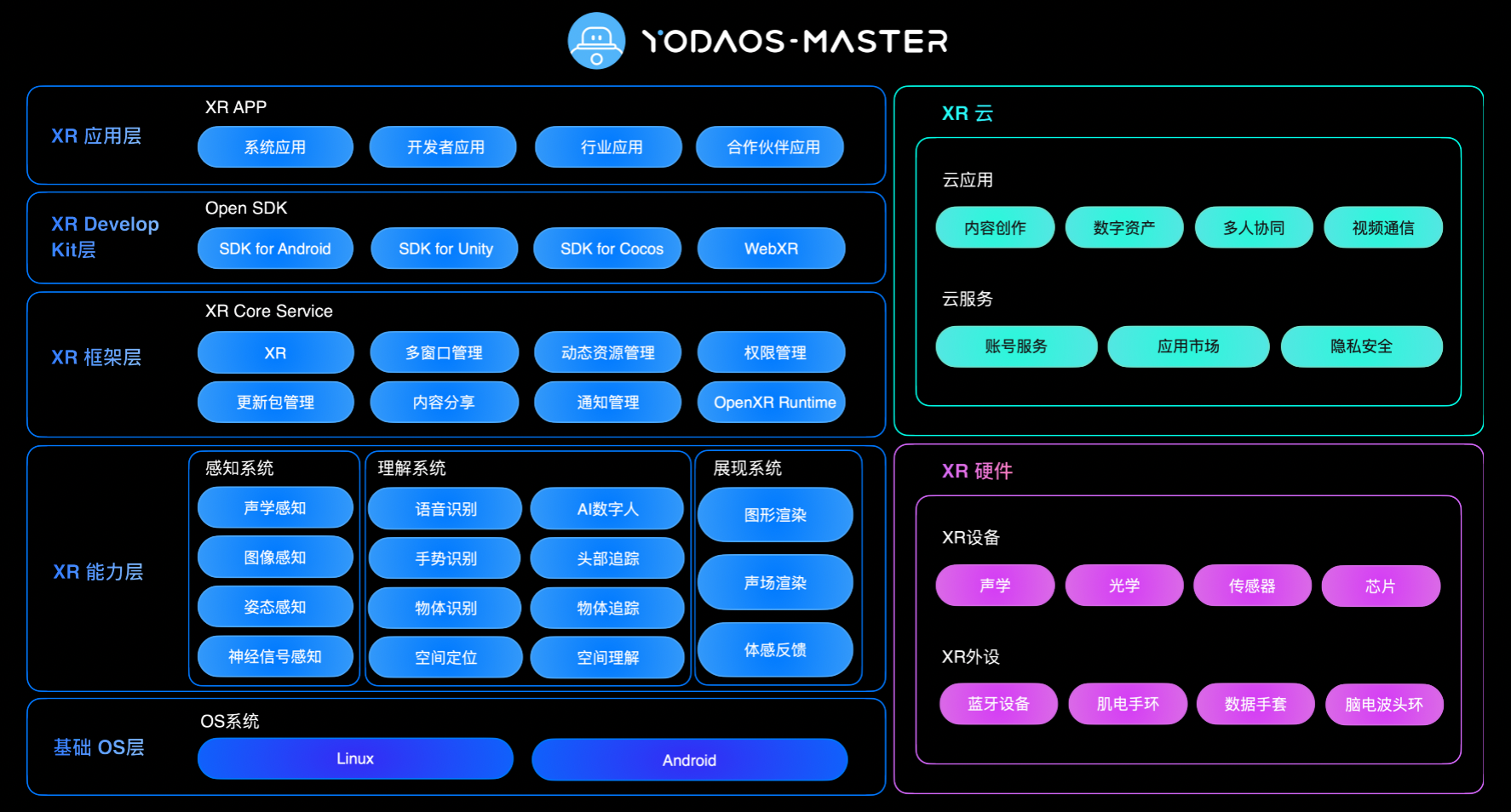 几年后,YodaOS完成了一次彻底的转型:从音箱OS进化为空间计算****操作系统。底层换成了深度定制的AOSP(Android开源项目),兼容整个Android生态,但核心已经完全面向AR/XR场景优化。