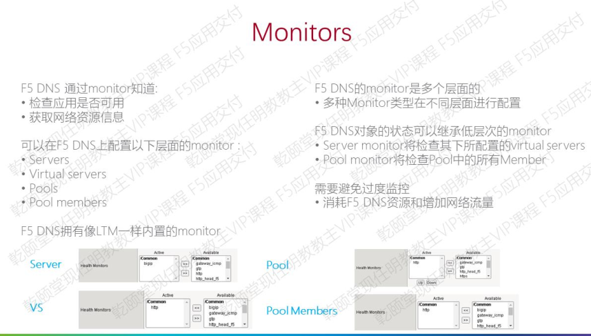 Monitos:健康状况,可以针对GSLB中servers、pool、pool member、virtual servers监控;