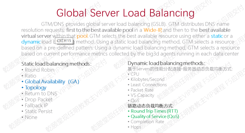 Global Server Load Balancing:全局负载算法,分静态及动态,各有: