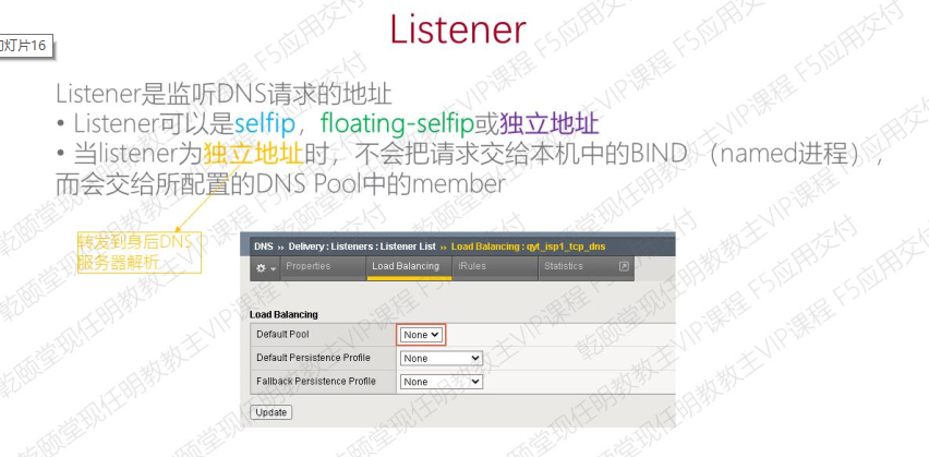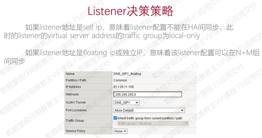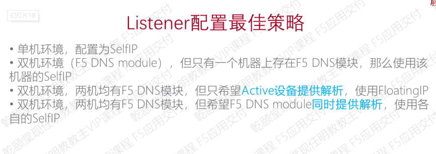 listener:监听DNS请求和服务。与wideip关系为wideip-listener--pool--vs(不属于gslb,不会自动同步listener配置,属于LTM,可LTM同步)