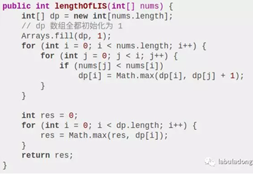 Dp[i]表示以nums[i]这个数结尾的最长递增子序列的长度,最终的结果是Dp数组中最大值