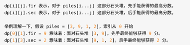 根据前⾯对 dp 数组的定义,状态显然有三个:开始的索引 i,结束的索引j,当前轮到的⼈。