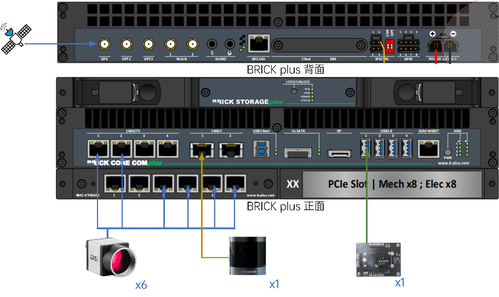 采用BRICKplus提供大容量(8/16/32TB)高速写入(16Gbit/s)存储硬盘,能够高效稳定落盘传感器数据。采用GPS模块,支持(g)PTP时间同步与定位。