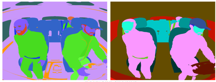 不同分割标准的传感器真值掩膜(左:材料分割掩膜 右:标注分割掩膜)